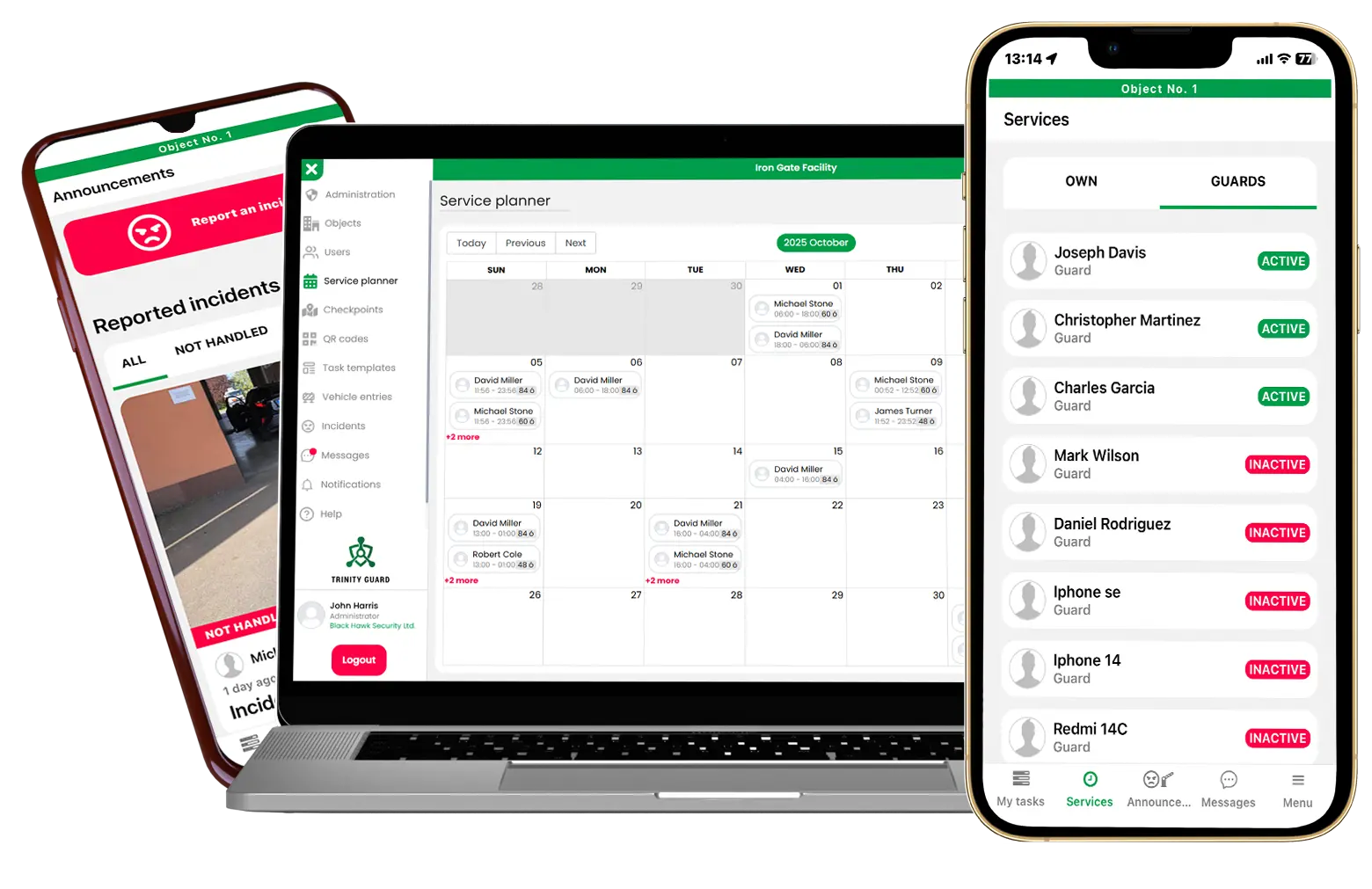 Cloud-based, AI-powered patrol & duty-roster app for security companies to track guards, incidents & shift compliance.